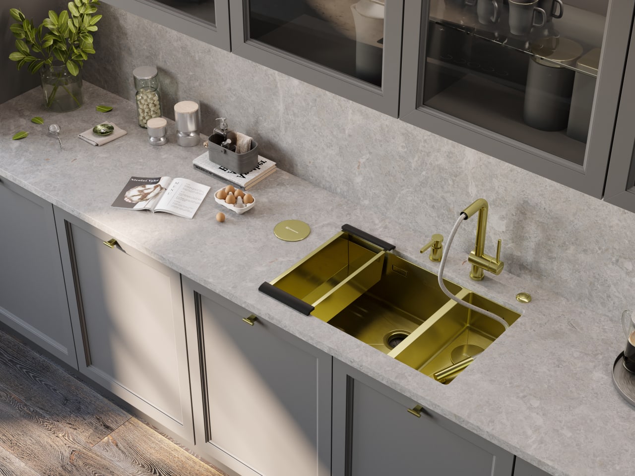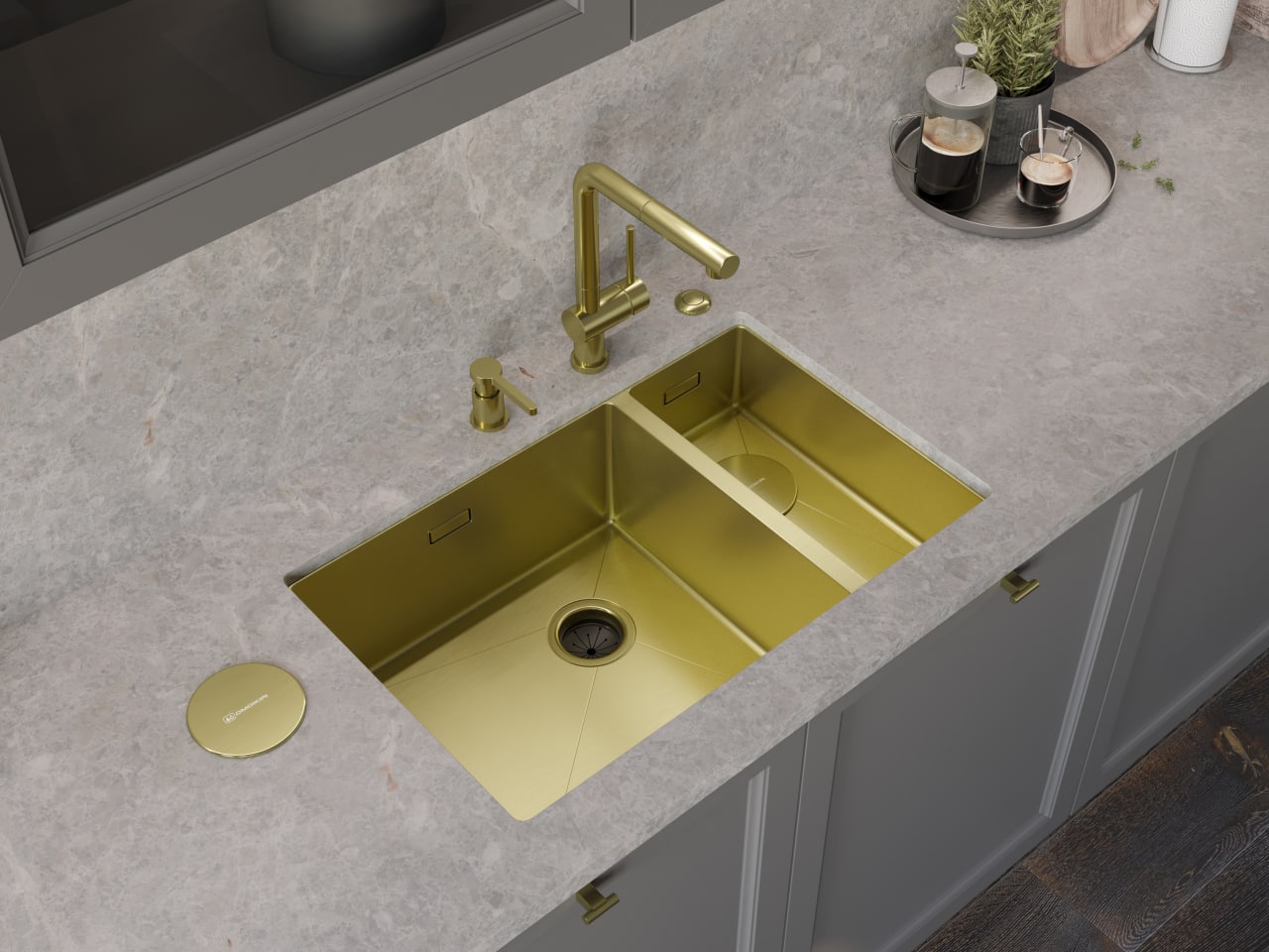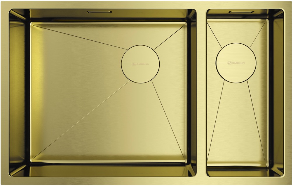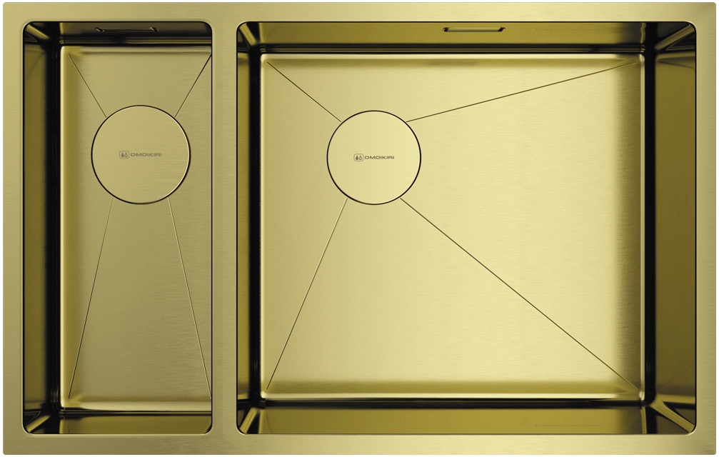 Стальная мойка Omoikiri Taki 69-2-U/IF-LG-L/R Side (69,5х44см) 4997051/4993184 светлое золото