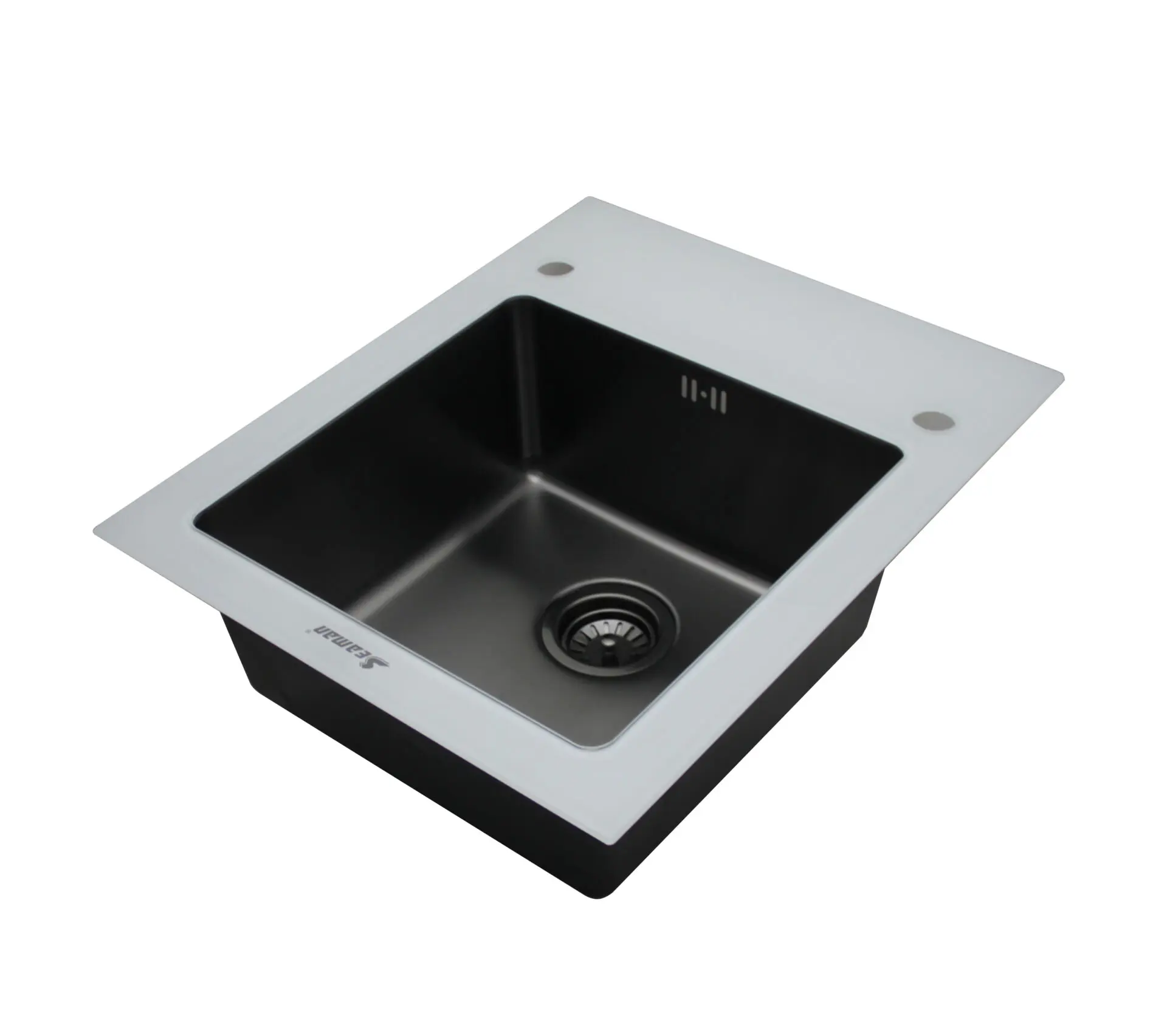 Стальная мойка SeaMan Eco Glass 61х50 см белый/оружейная сталь SMG-610W-Gun.B