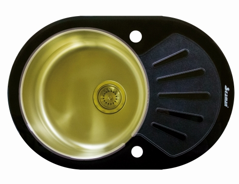 Стальная мойка SeaMan Eco Glass 73х50 см черный/золото SMG-730B-Gold.B