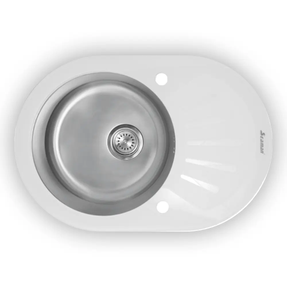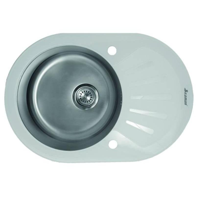 Стальная мойка SeaMan Eco Glass SMG-730W 73х50 см белый/сталь SMG-730W.B