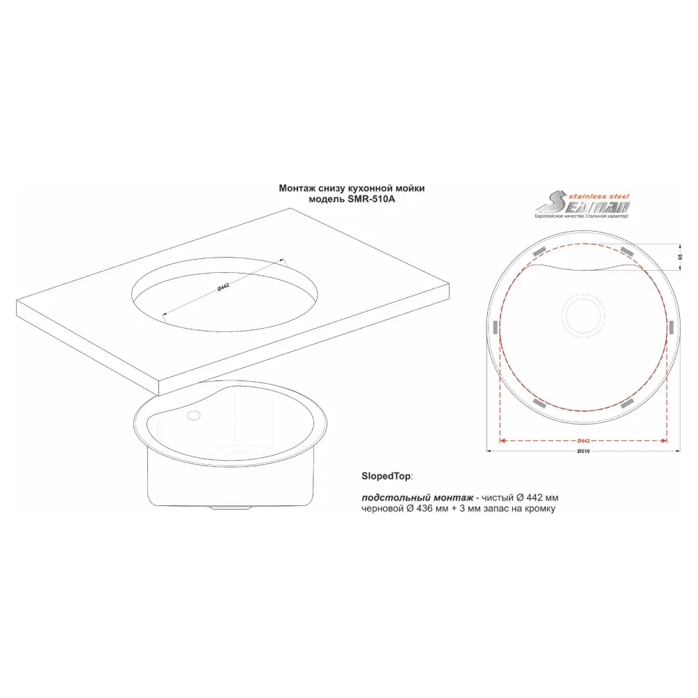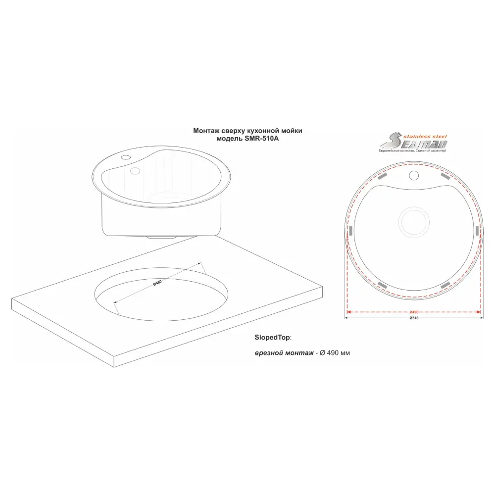 Стальная мойка SeaMan ECO Roma 51 см SMR-510A.0 / SMR-510A.A
