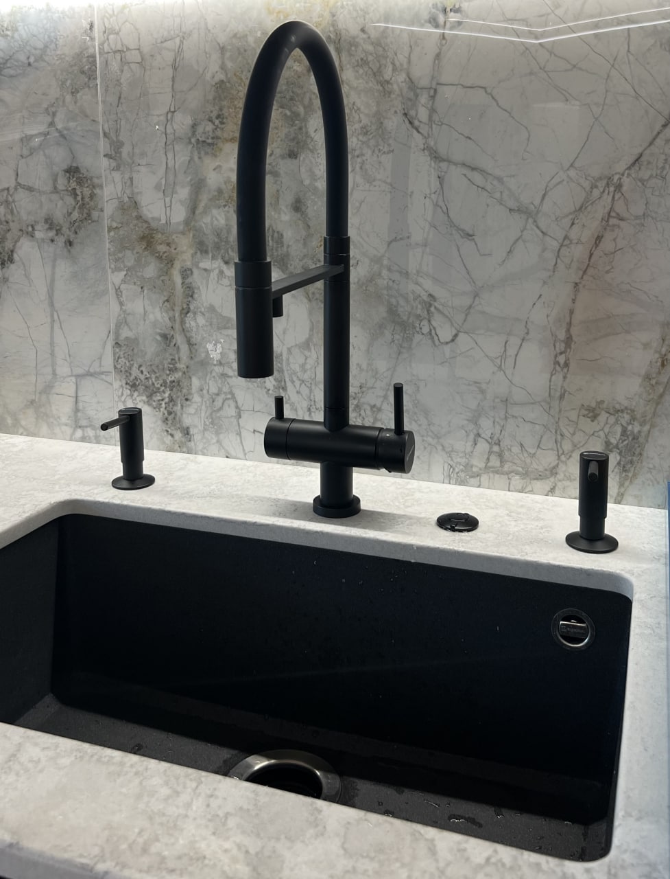 • Мойки из «Tetogranit» устойчивы к механическим повреждениям. Входящий в состав кварцевый песок представляет собой кристаллическую структуру, что придаёт мойке устойчивость к воздействию различных кислот и щелочей, гарантируя неизменность внешнего вида мойки;