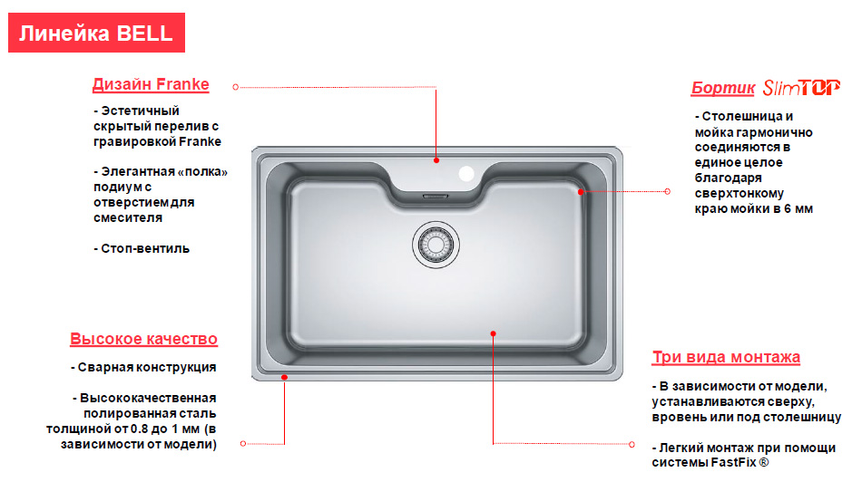 Стальная мойка Franke Bell BCX 110-42 45х44,5 см полированная 122.0689.805
