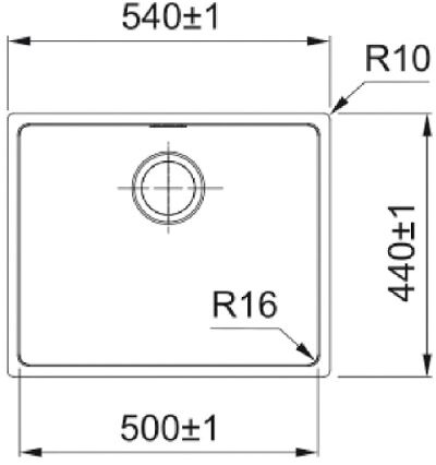 Радиус закругления угла чаши 16 мм