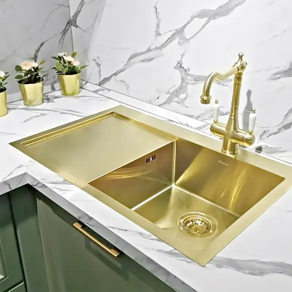 Стальная мойка SeaMan Eco Marino L/R 78х50 см светлое золото сатин SMV-780L-LG.A (R)