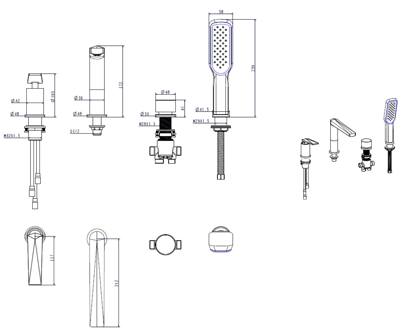 | В комплекте | Душевая лейка, шланг 150 см, аэратор, переключатель потоков, подводка |