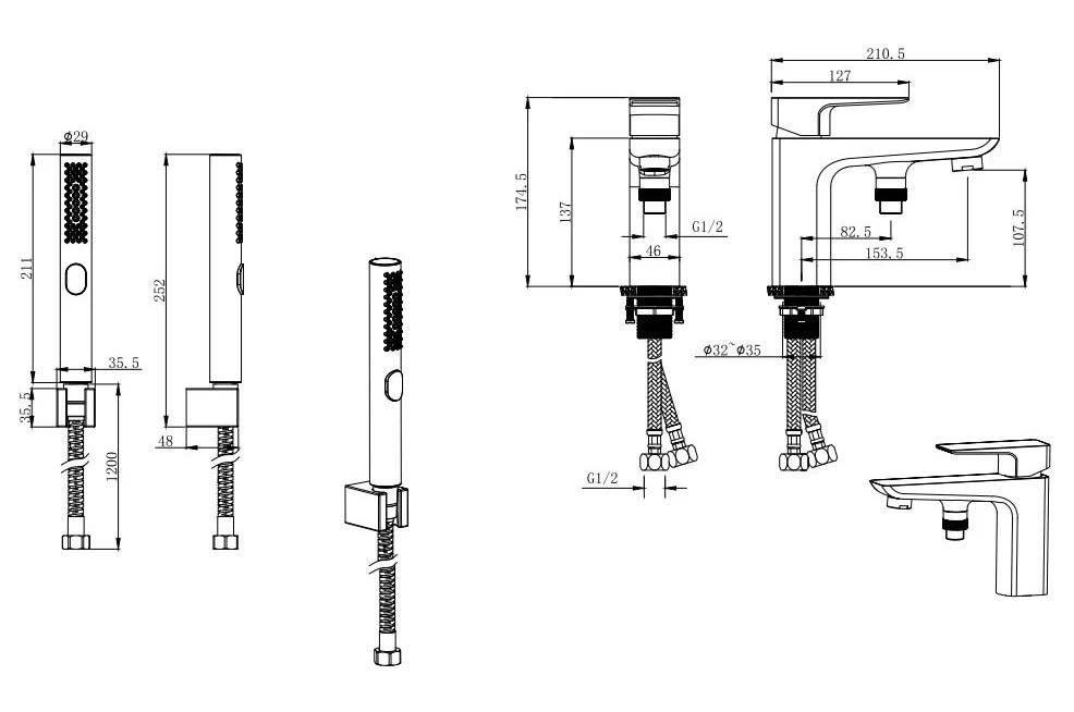 | В комплекте | Гибкая подводка 50см, лейка пластик 3 режима, шланг 150см сталь, настенный держатель |