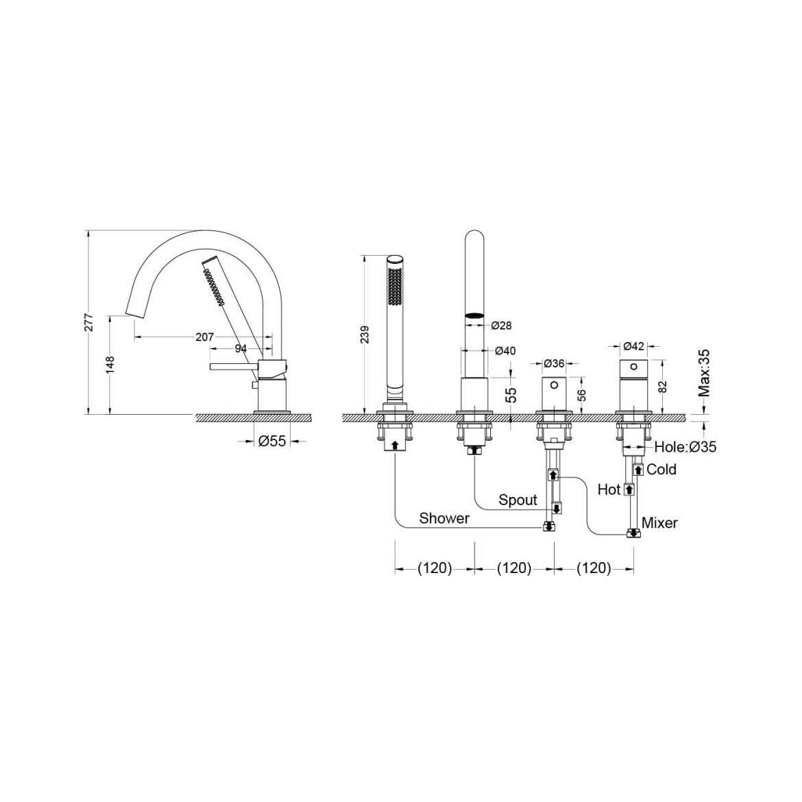 | Высота смесителя, см | 27,7 |