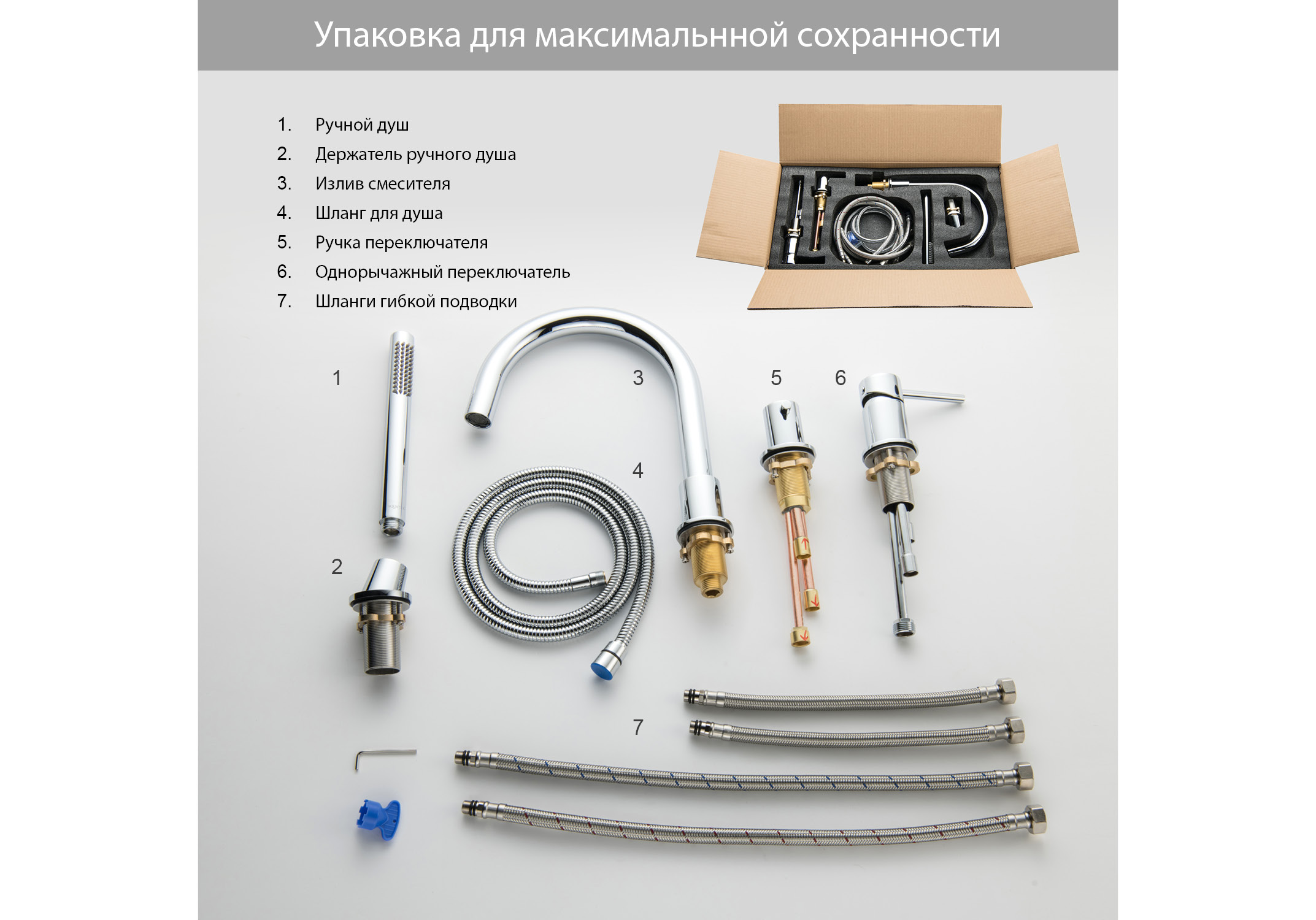 • Цельный корпус смесителя снижает вероятность протечек