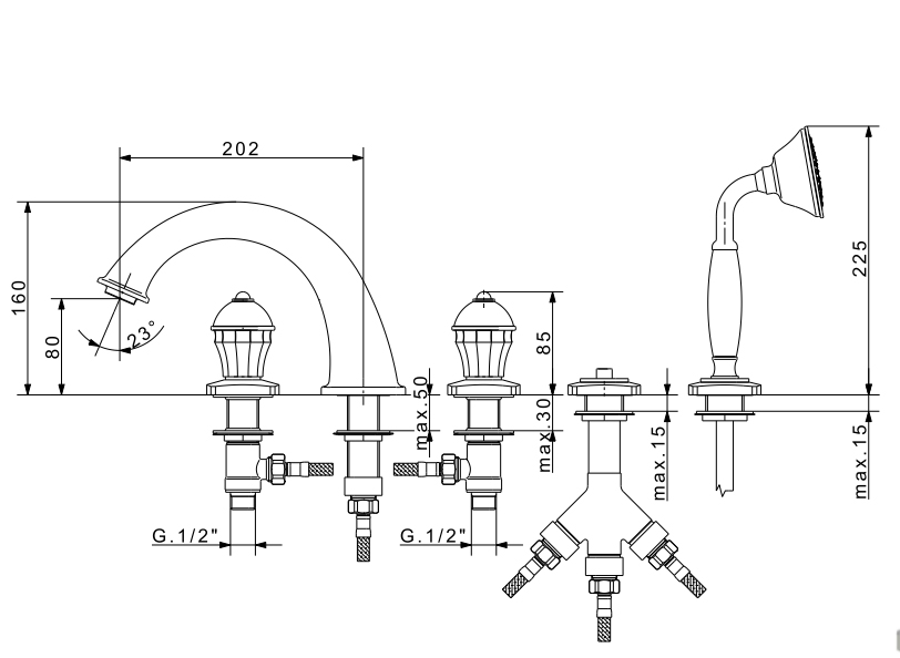 Смеситель на борт ванны на 5 отв Migliore Korona Swarovski 27308 хром