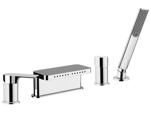 Тип: Однорычажный, на 4 отверстия, в комплекте переключатель воды, излив с множеством отверстий, шланг и лейка