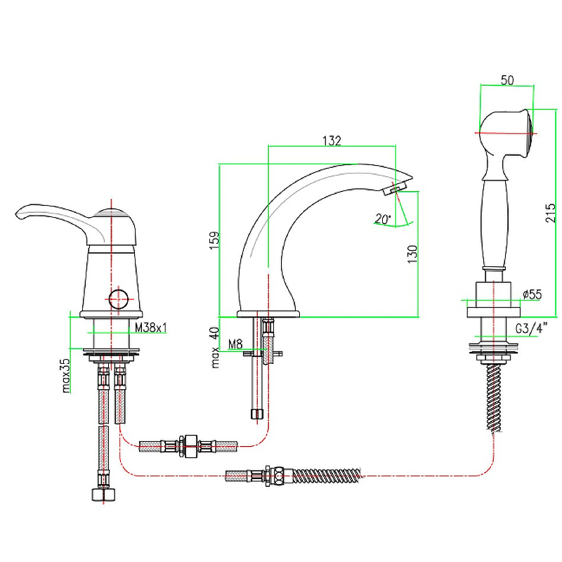 Излив: фиксированный 13,2 см