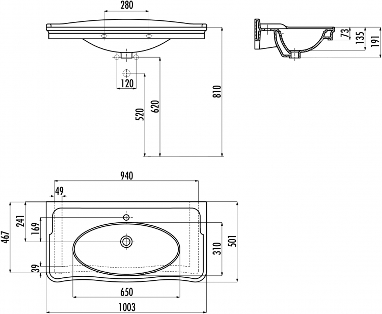 Раковина подвесная/ на ножки Creavit Antik 100 см AN100-00CB00E-0000