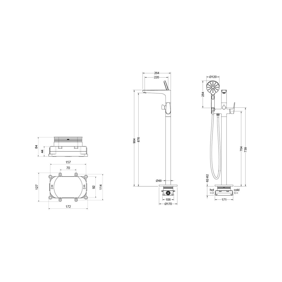 | В комплекте | Смеситель (внешняя и скрытая часть), лейка ABS-пластик 1 режим, шланг 150см сталь |