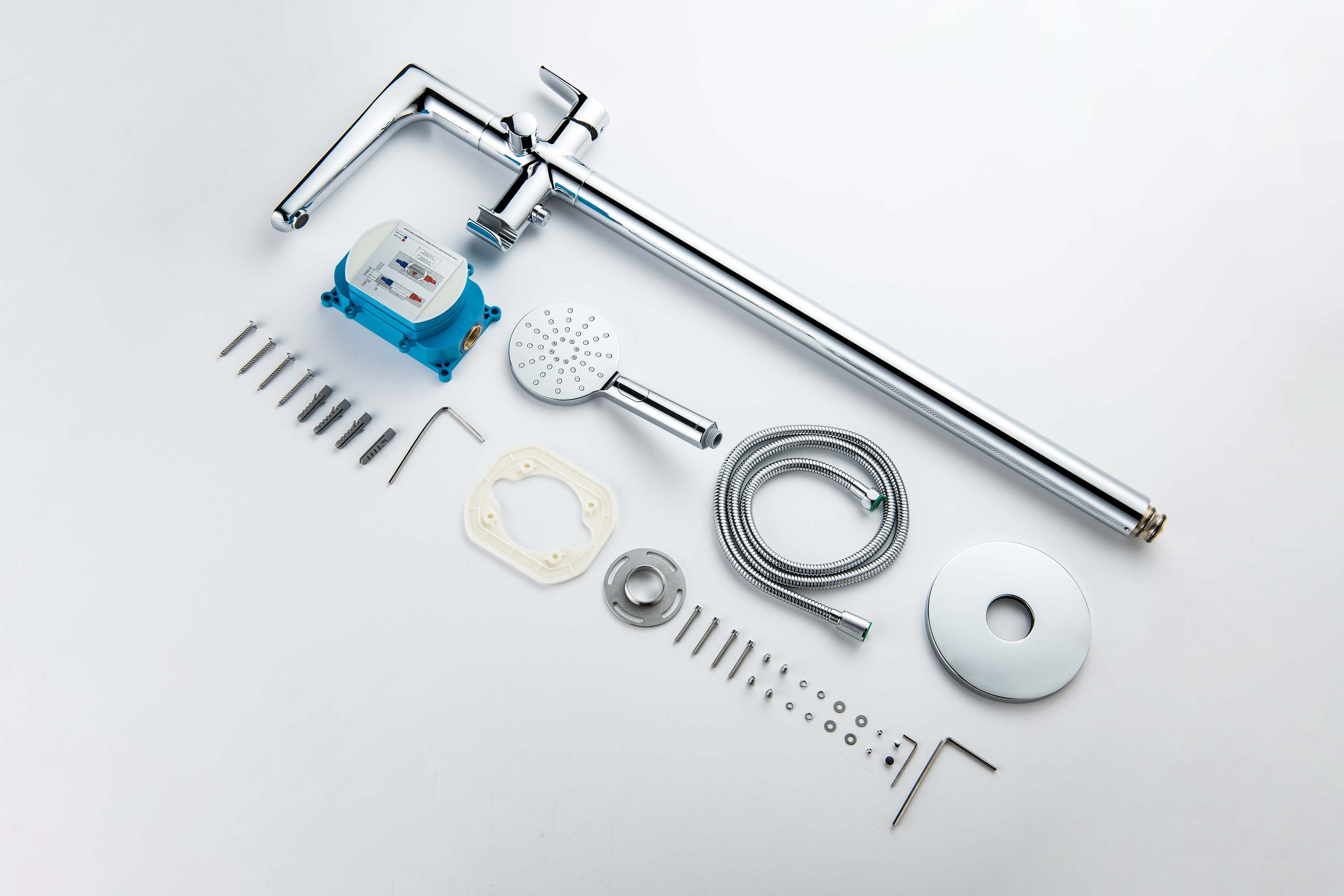 • cмеситель из латуни с установочной коробкой (внешняя и скрытая часть)