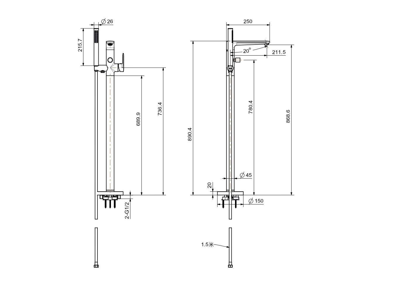 | В комплекте | Лейка латунь 1 режим, шланг 150 см сталь, держатель лейки, крепление |