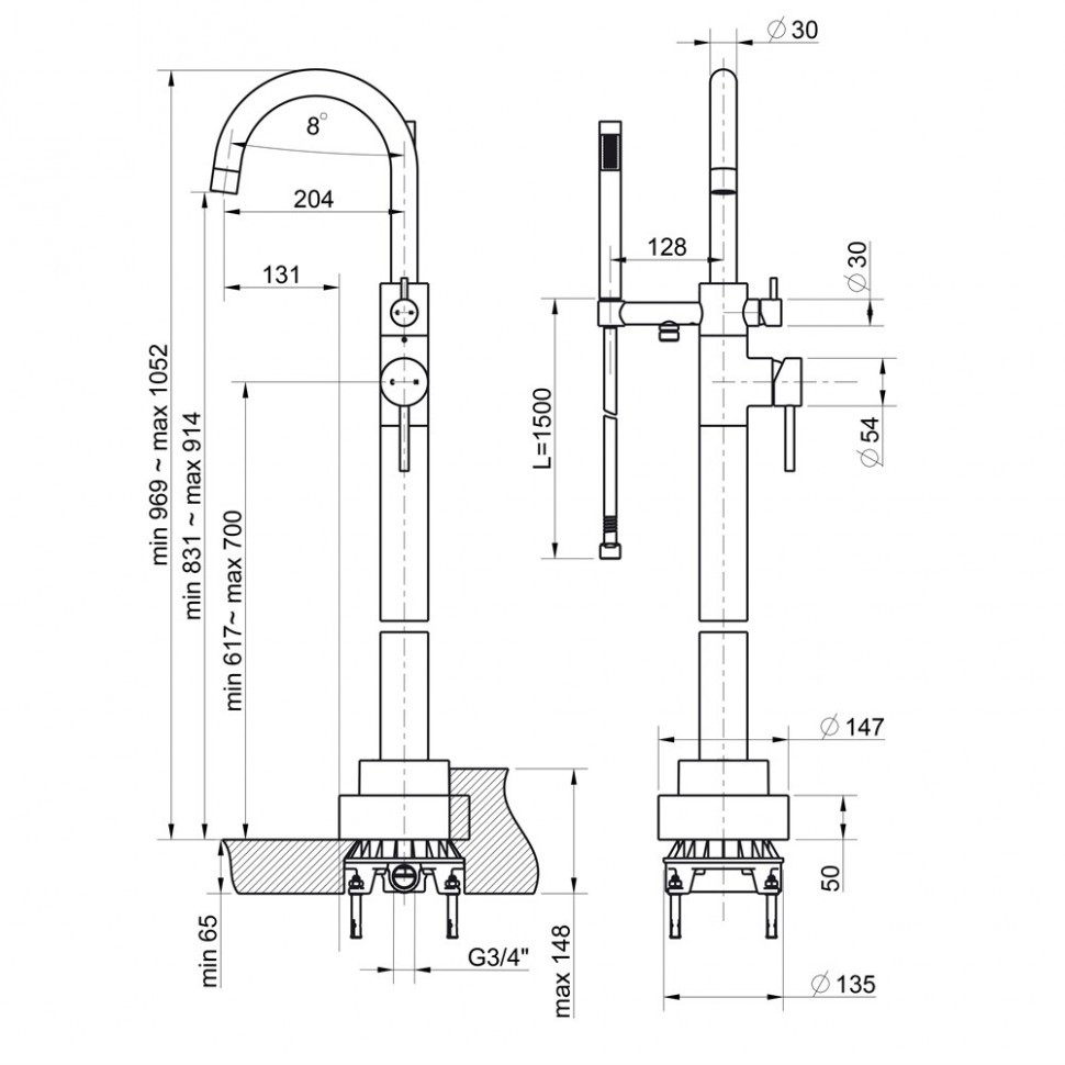 - Напольное расположение и высота смесителя позволяют установку в бассейн, сауну или станут новаторским решением для отдельно стоящей ванны.