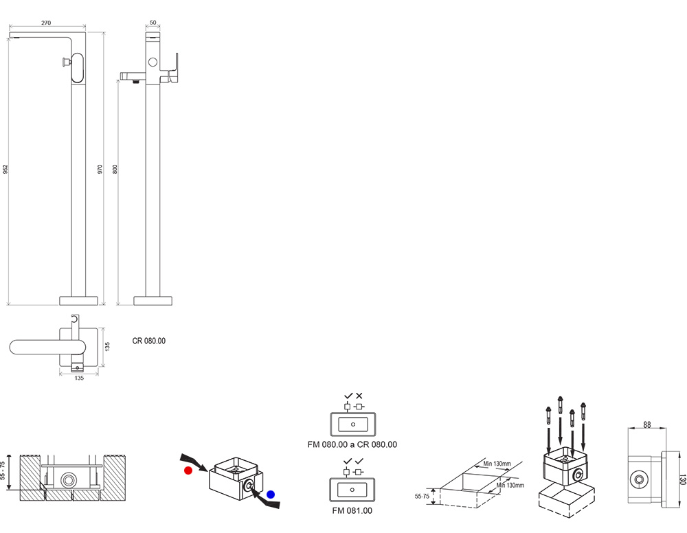 Напольный смеситель для ванны Ravak Chrome CR 080.00 хром X070101