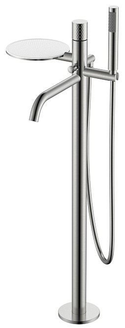 | В комплекте | Смеситель для ванны, ручной душ, душевой шланг 150 см, держатель ручного душа, полочка, комплект креплений |