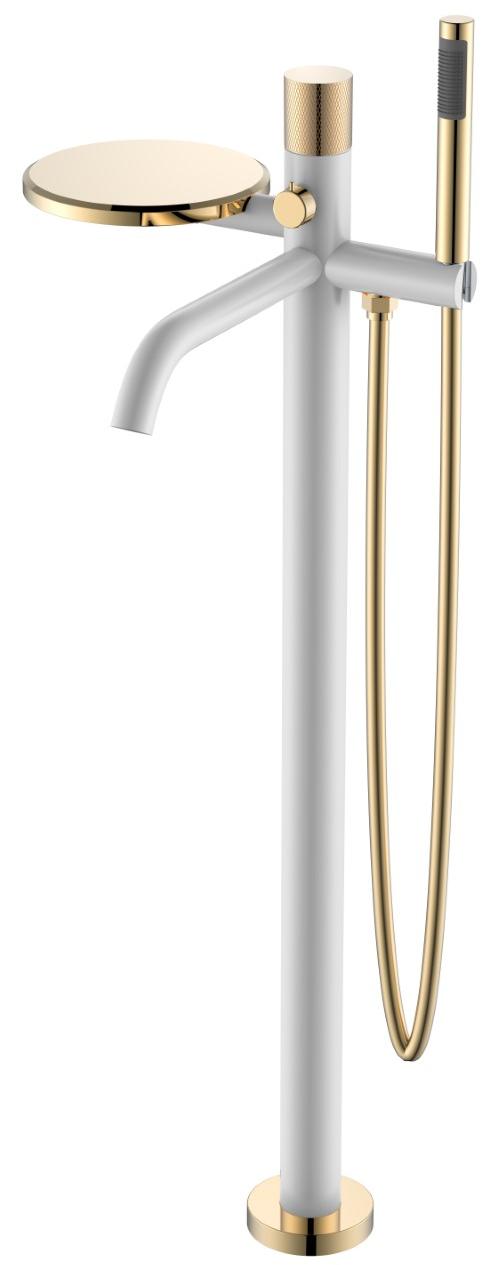 - Напольный смеситель для ванны с душем Boheme Stick ручка Touch белый/ золото 129-WG.2