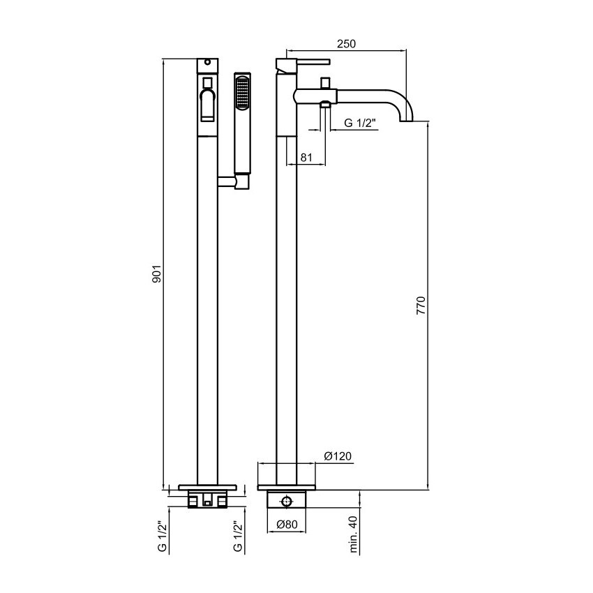 Напольный смеситель для ванны Webert Elio черный EL851101560