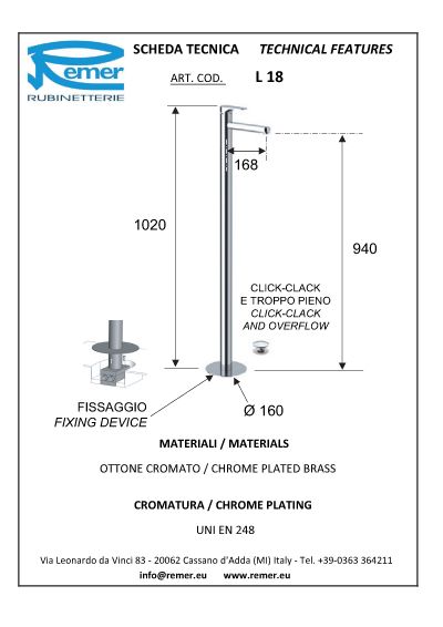 Тип: Однорычажный, высота 95 см, донный клапан click-ckack с переливом