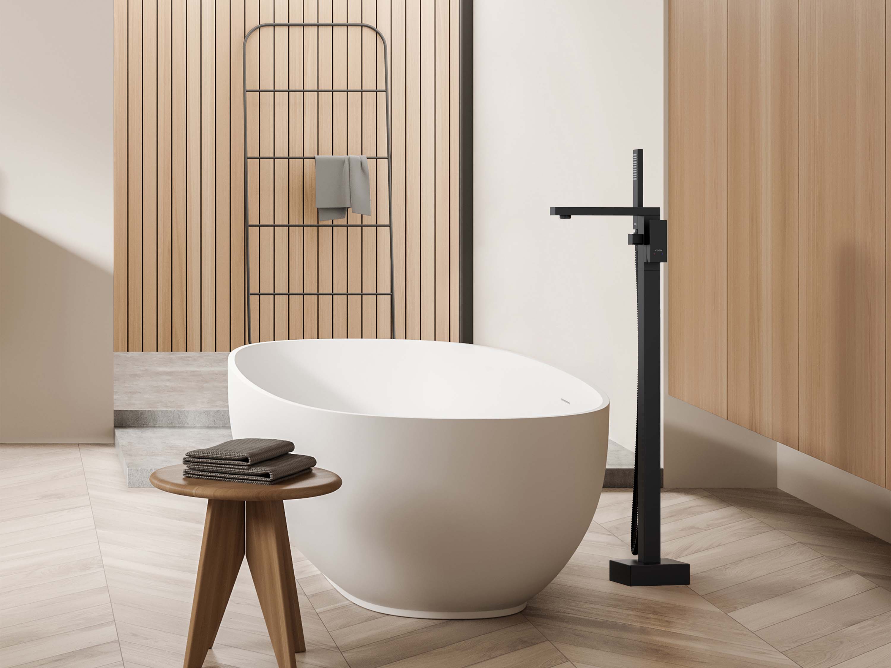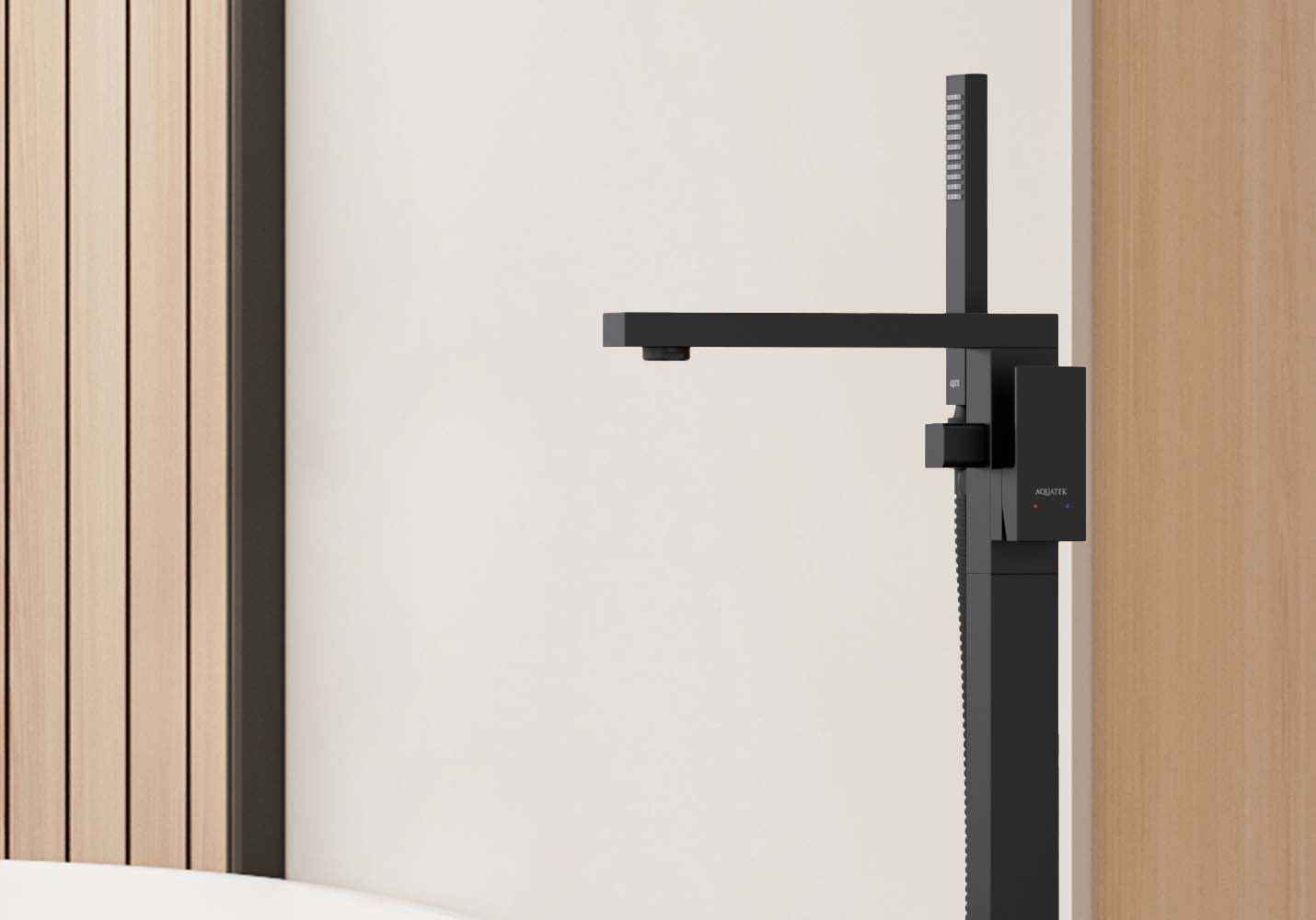- Смеситель напольный для ванны Акватек Либра черный матовый AQ1645MB
