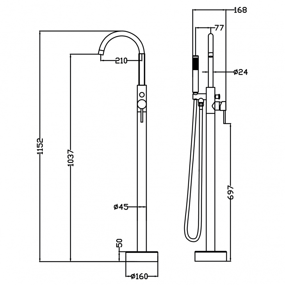 Смеситель напольный для ванны Swedbe Spira 4000B