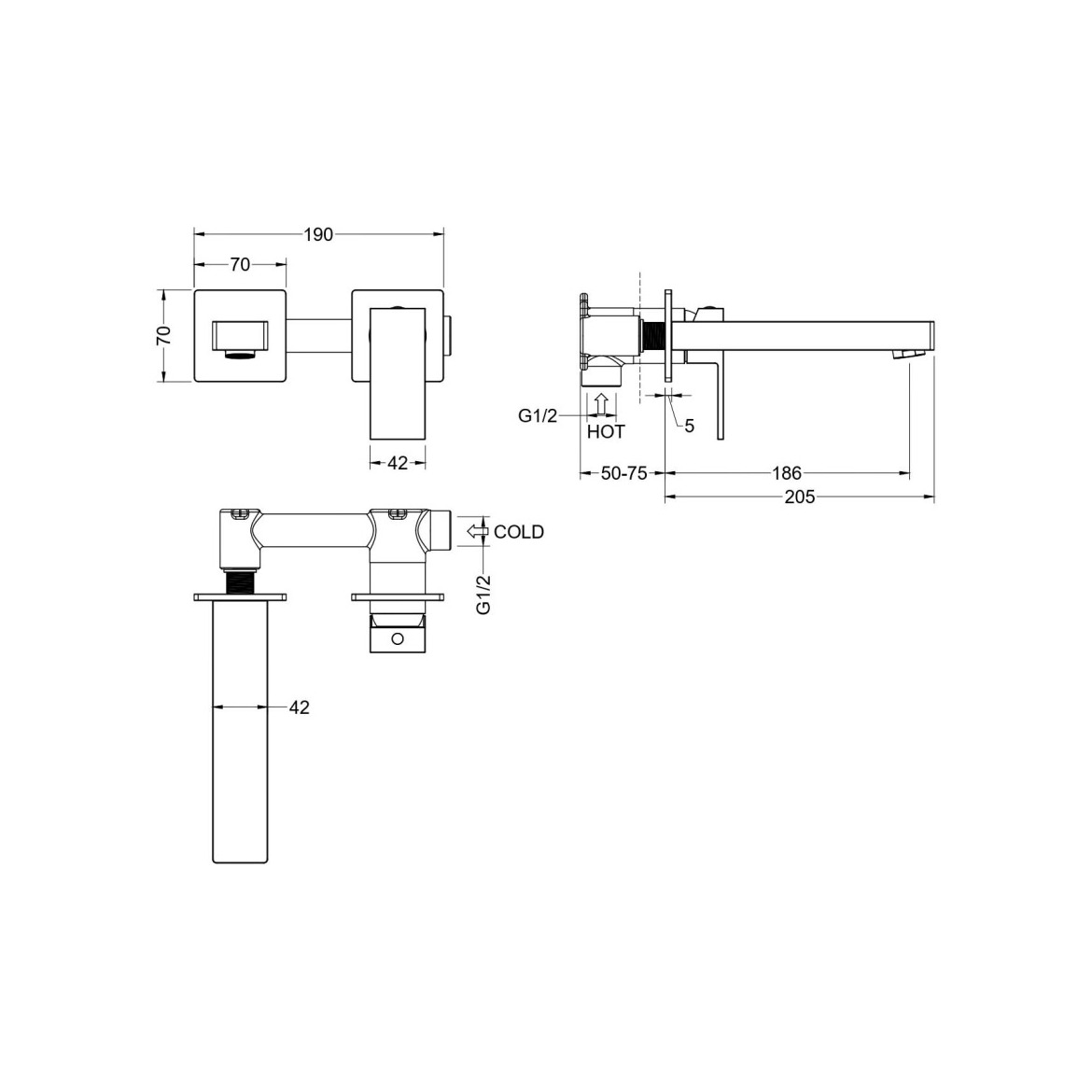 | В комплекте | Внешняя и скрытая часть, накладка на стену сталь |