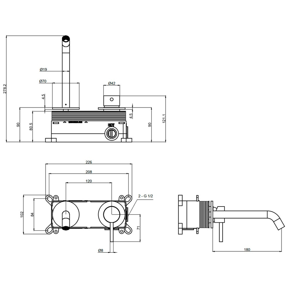 Настенный смеситель для раковины AQUAme Siena AQM6215GM темн металл