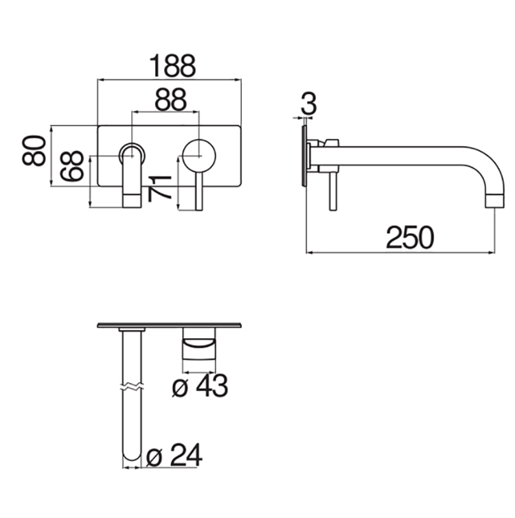 Длина излива 250 мм