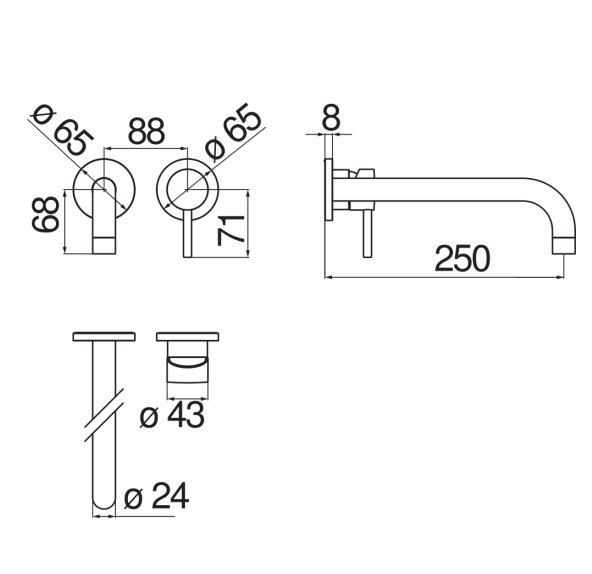 Длина излива 250 мм