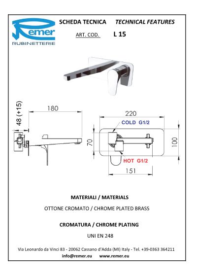 Настенный смеситель для раковины Remer Class Line L15