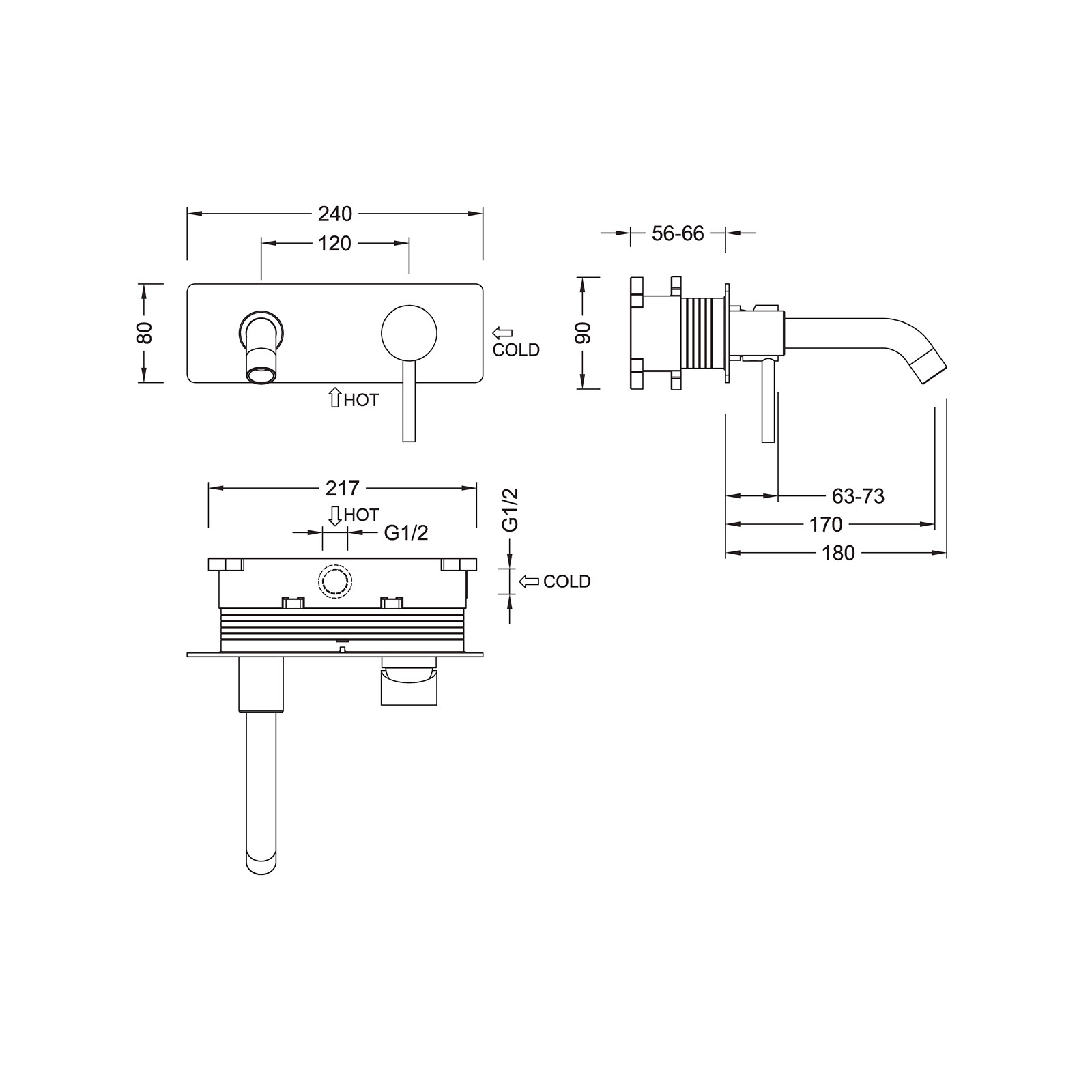 - Настенный смеситель для раковины Timo Saona черное золото 2371/18SM