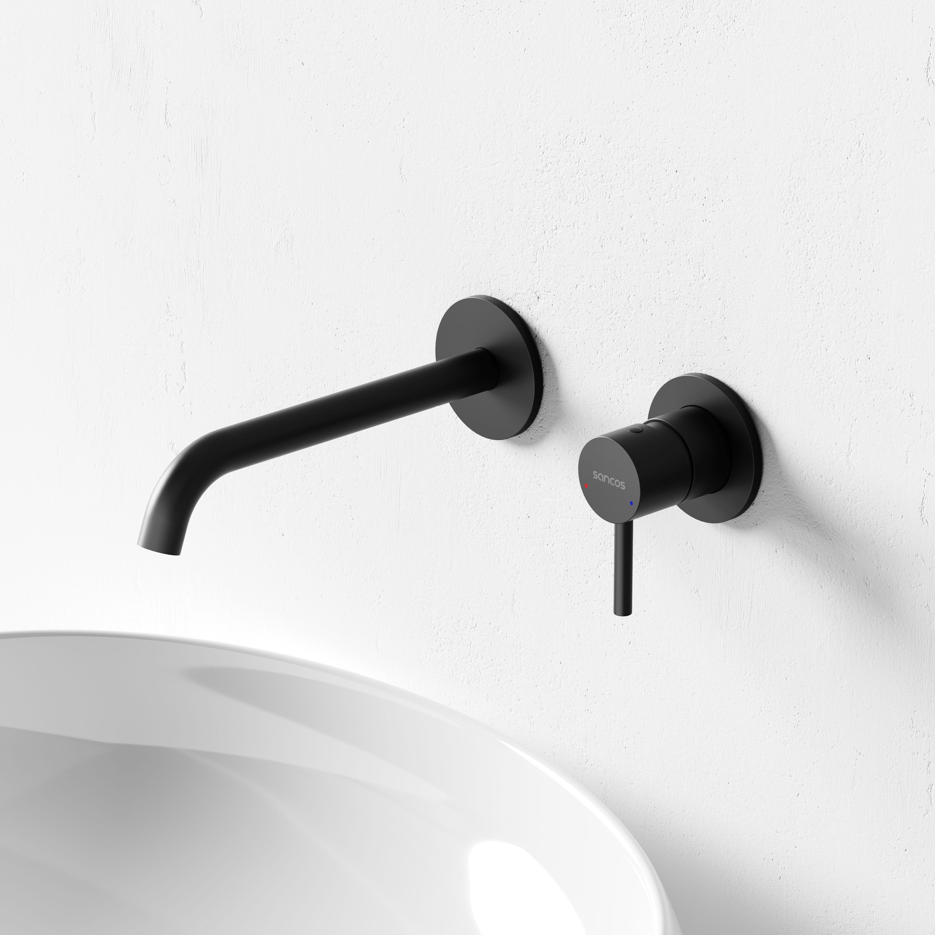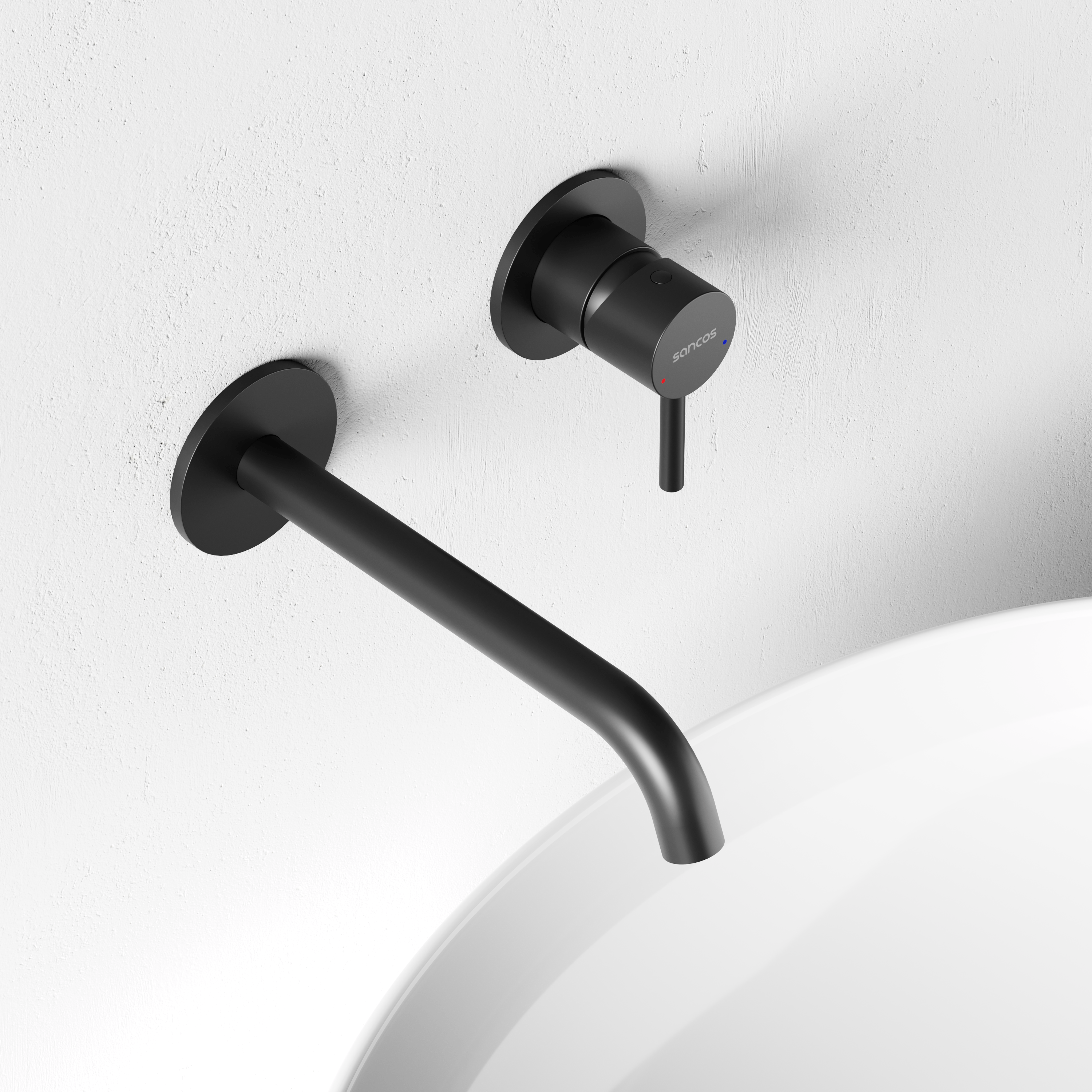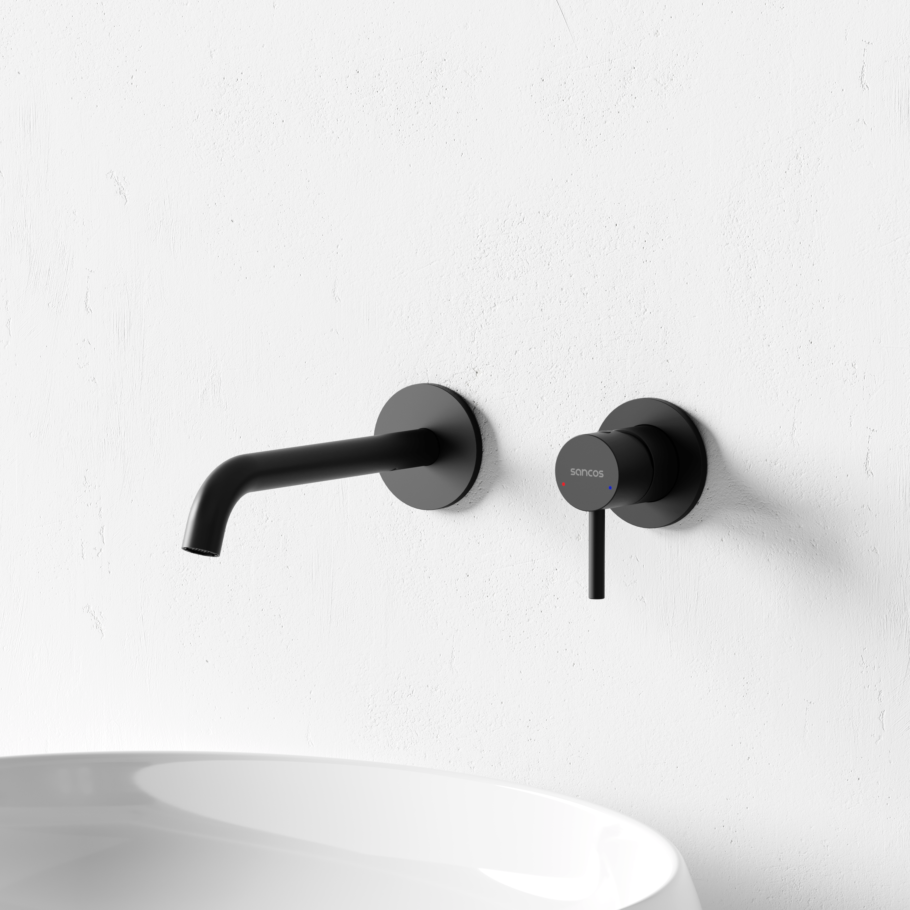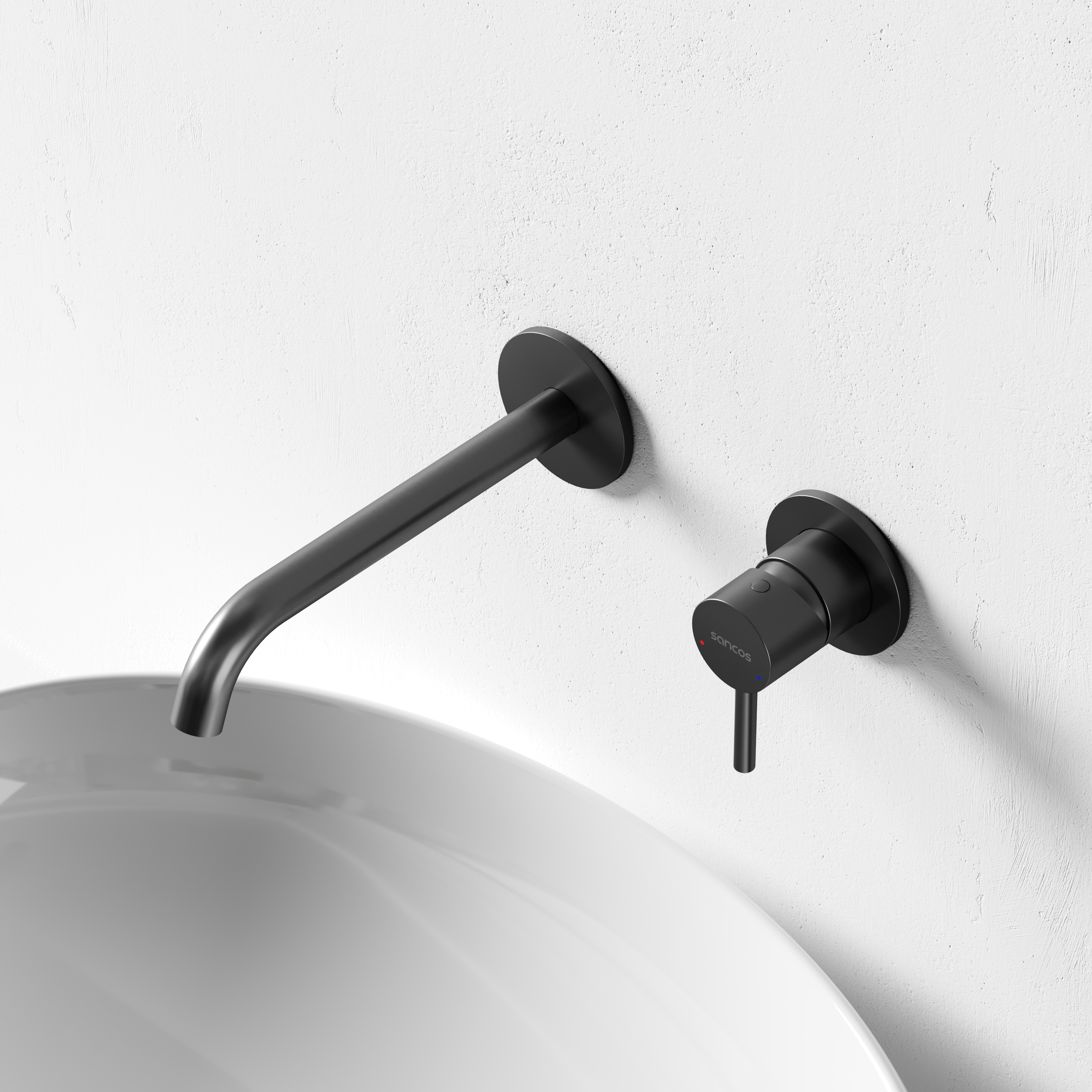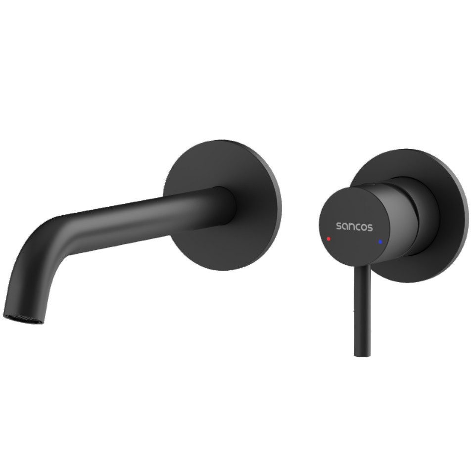 Смеситель для раковины настенный Sancos Этна (Etna) черный матовый SC9004MB
