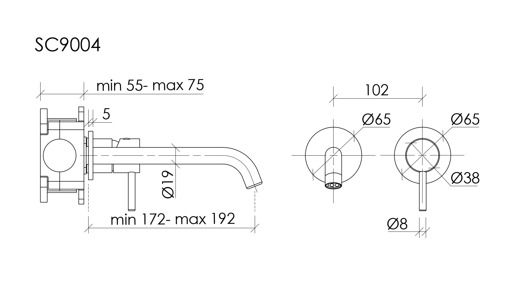 - Встраиваемый в стену смеситель для раковины с внутренней частью из латуни
