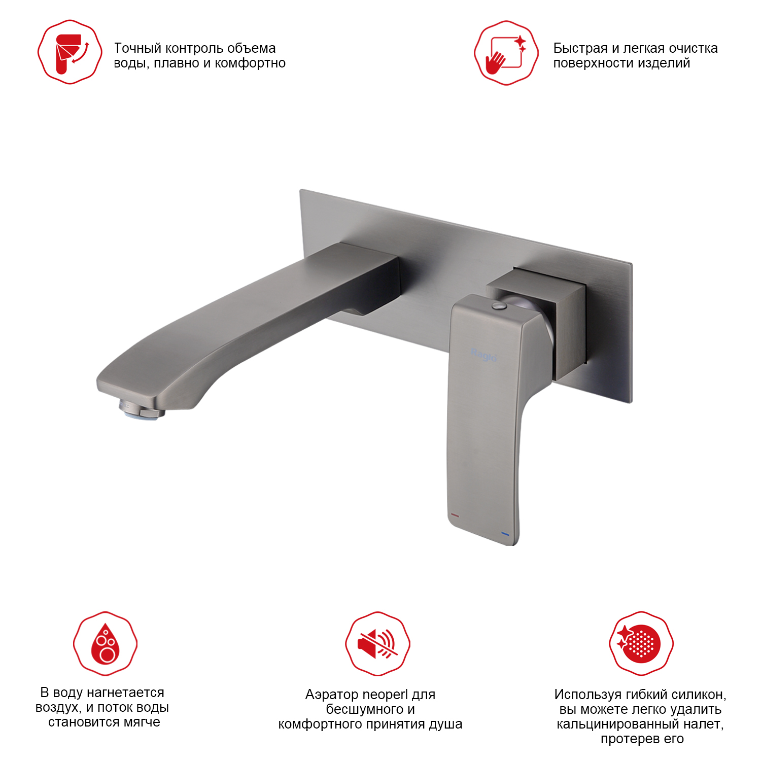 Встраиваемый смеситель для раковины Raglo R01.11.09 графит матовый