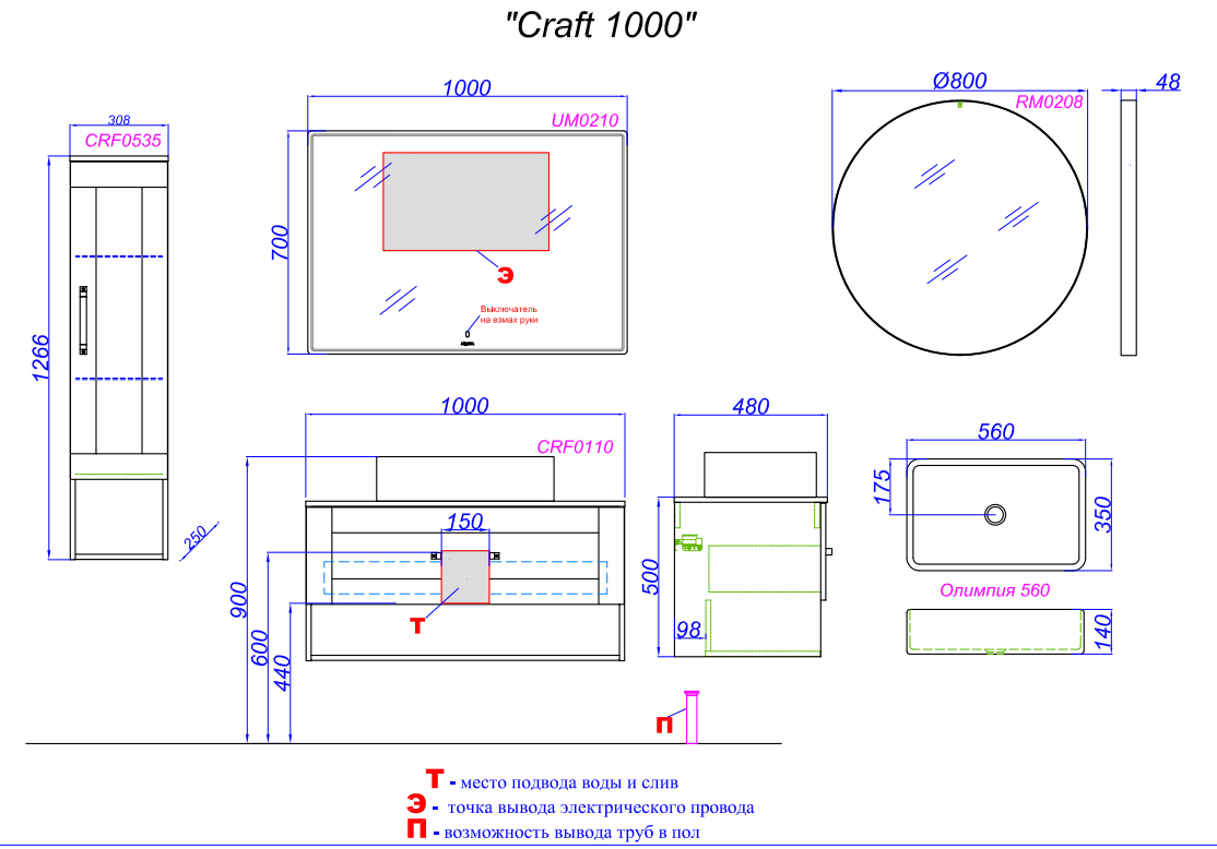 Интерьер ванной комнаты сложно представить без зеркала. Универсальные зеркала серии RM в черной металлической раме хорошо сочетаются по цвету и форме с коллекцией Craft. А минималистичная серия UM со светодиодной подсветкой и регулятором освещенности подойдет тем, кто любит дополнительные источники света в ванной комнате.