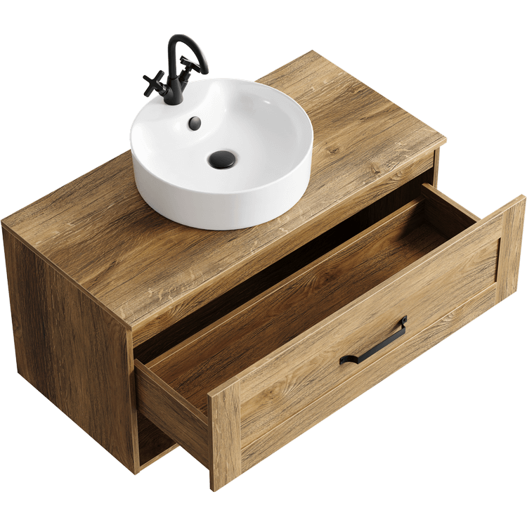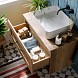 К тумбам подходит любой накладной умывальник. Столешница тумбы без заводского выреза, поэтому умывальник можно разместить не только по центру, но и со смещением влево или вправо.