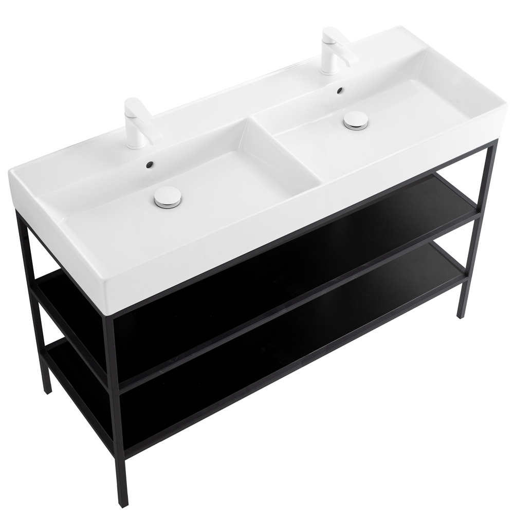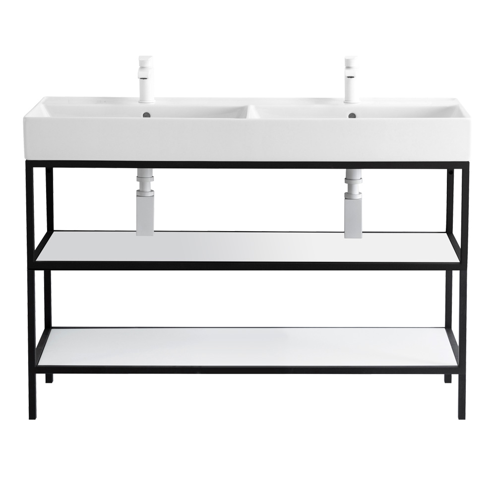 Двухъярусный напольный стальной сварной каркас под раковину, 120х46х73 см