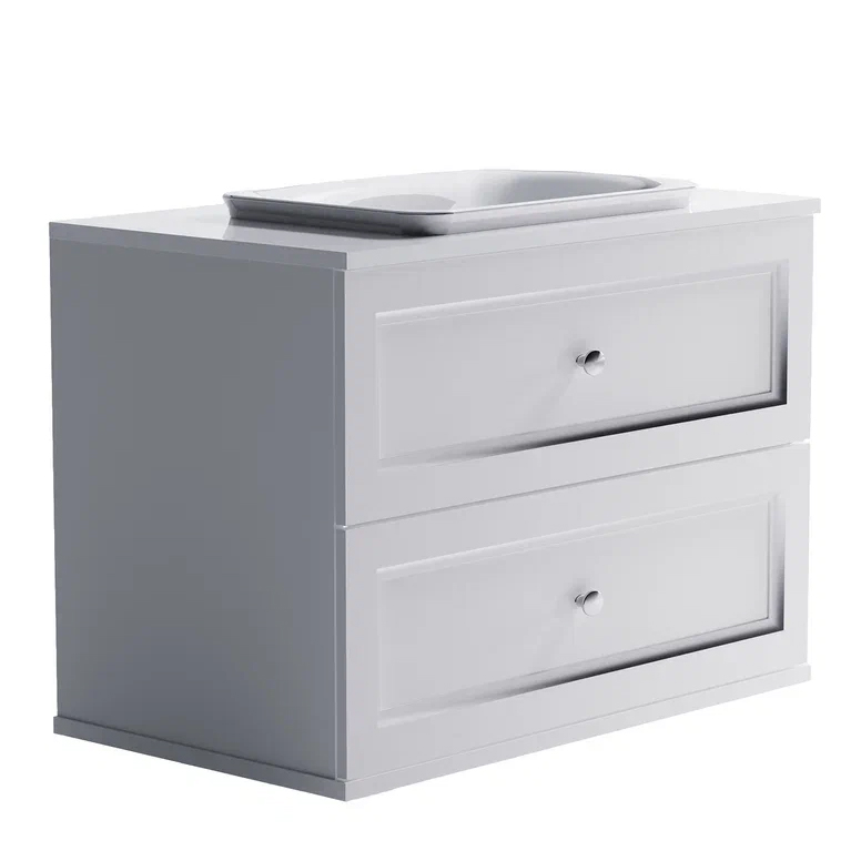Детали фасадов мебели для ванных комнат производства компании Asrta-Form изготовлены из MDF. Отделка корпусных и фасадных деталей производится лакокрасочными материалами итальянского производства. Поверхность мебели может быть только матовой. Раковины изготовлены из литого мрамора и имеют отверстие под смеситель в штатных местах, утвержденных производителем.