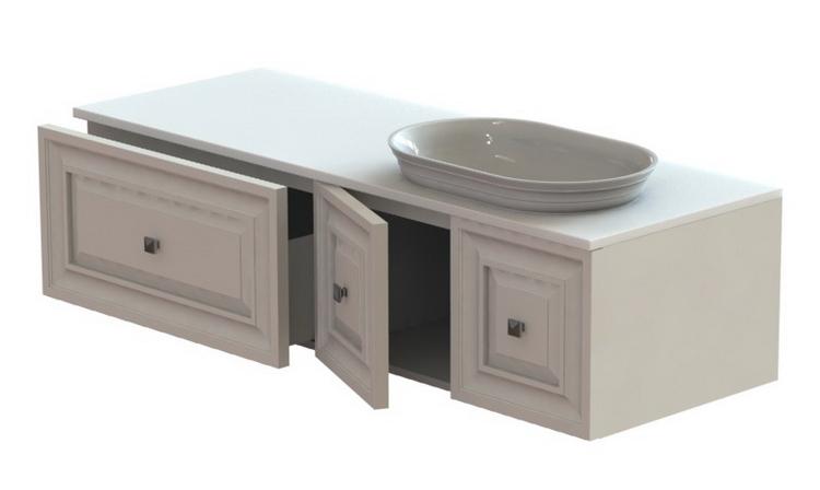 Детали фасадов мебели для ванных комнат производства компании ASTRA-FORM изготовлены из MDF. Отделка корпусных и фасадных деталей производится лакокрасочными материалами итальянского производства. Поверхность мебели может быть только матовой. Столешница и раковина изготовлены из литого мрамора. Столешницы в стандартном исполнении имеют вырезы под смеситель в штатных местах, утвержденных производителем. Раковины со столешницами поставляются в смонтированном виде.