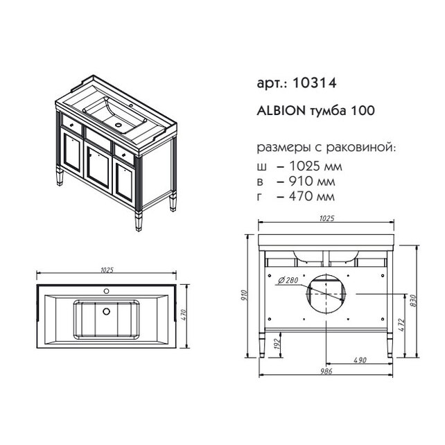 | Раковина | Y-100В керамика/ приобретается отдельно |