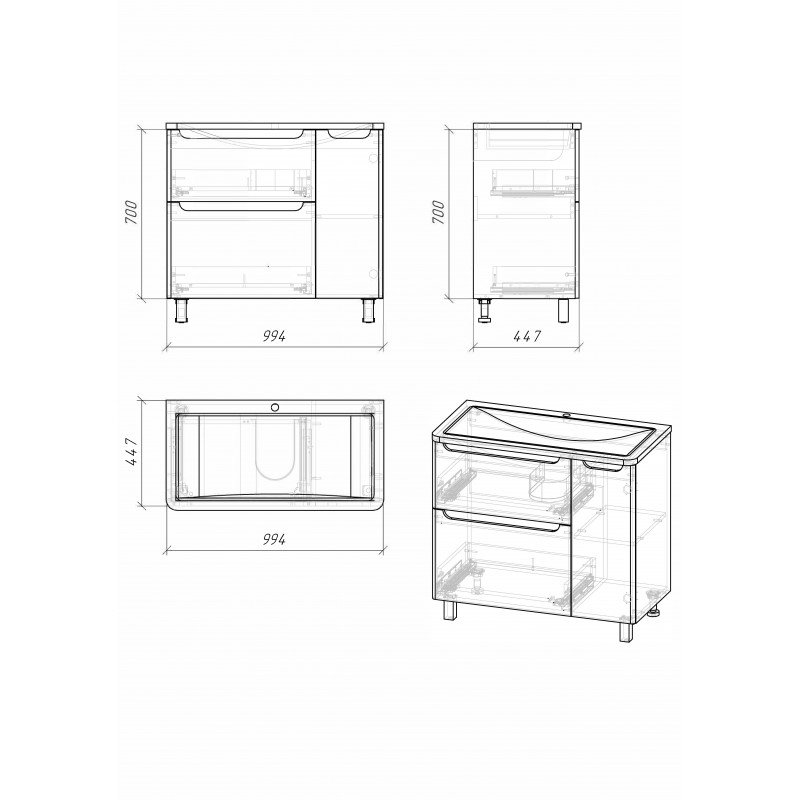 | Система хранения | Ящики, дверца |