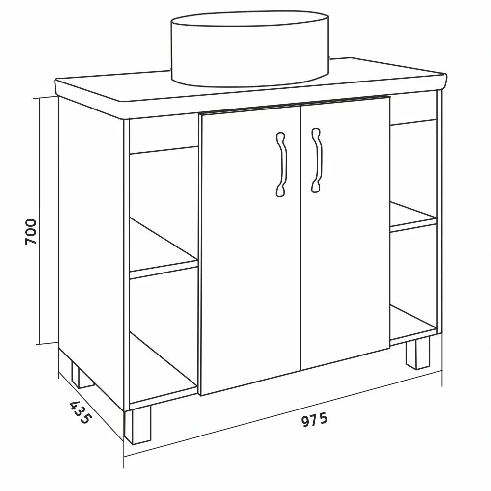 Корпус тумбы выполнен из ЛДСП, фасад - из МДФ в матовой пленке, перепадам температур и высокой влажности. Черная металлическая ручка и 4 ножки (2 декоративных черных и 2 пластиковых) идут в комплекте с тумбой.