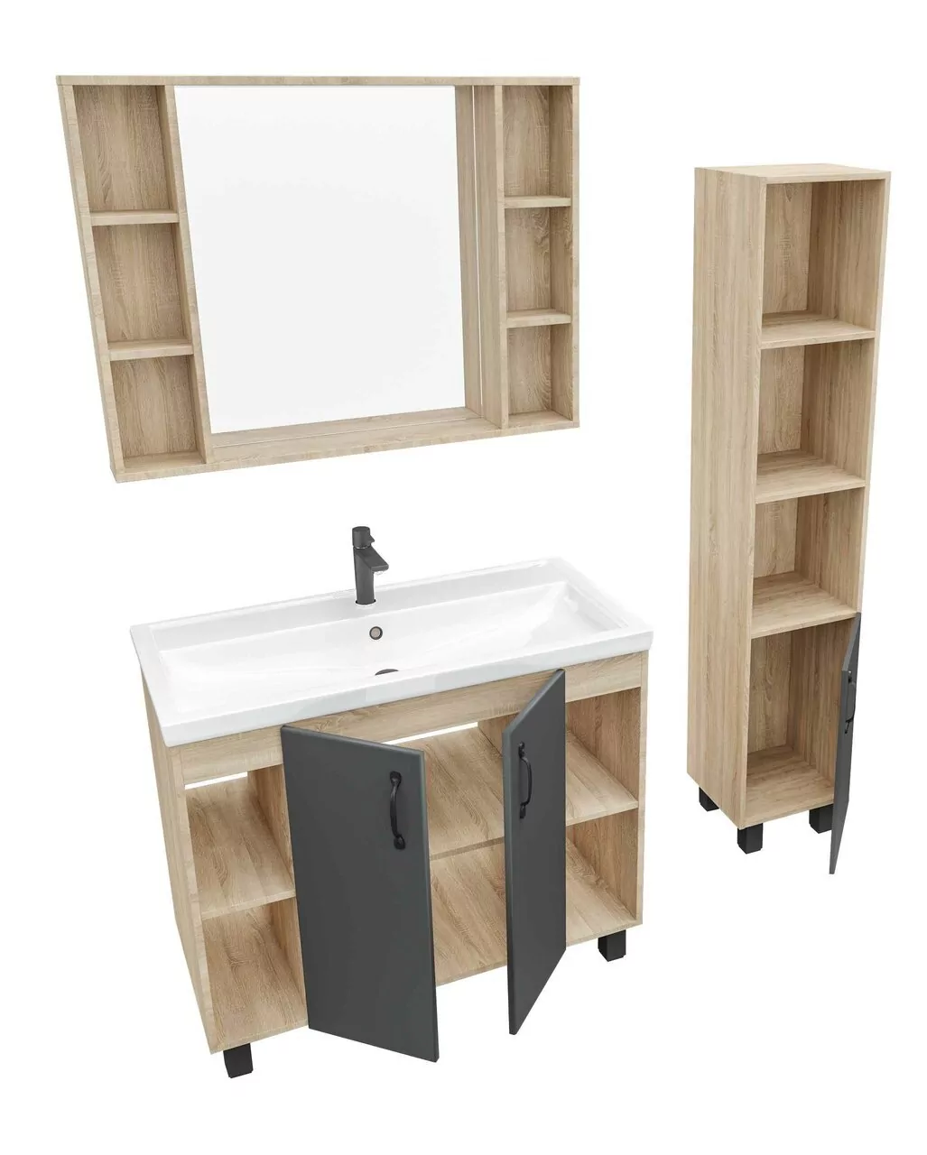 Тумба напольная под раковину/столешницу Grossman Флай 100 см дуб сонома/серый 101002