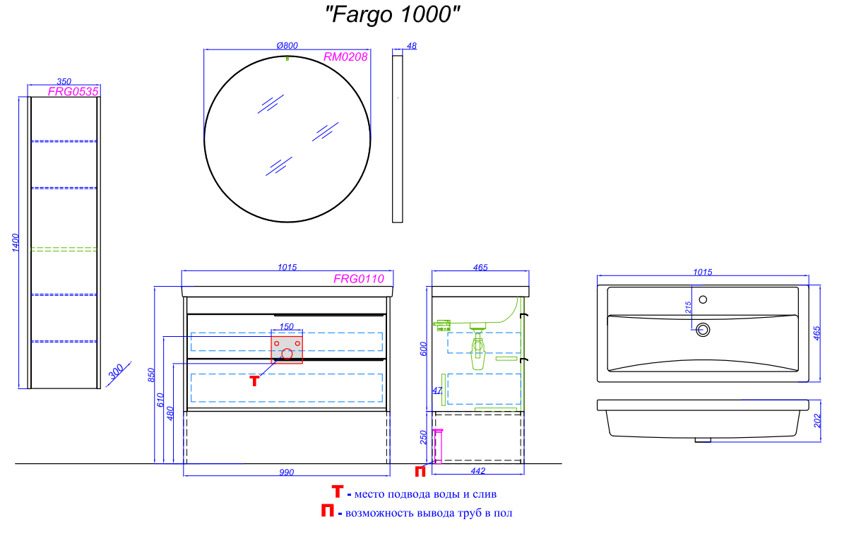 Тумба под раковину Aqwella Fargo 100 см подвесная/ напольная FRG0110DB