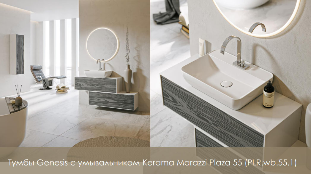 - Доступные цвета фасадов мебели: белый глянец (W) – фасады из МДФ покрыты эмалью; миллениум серый (MG) – фасады из ДСП с глубокой фактурой дерева от известнейшего итальянского производителя Cleaf.