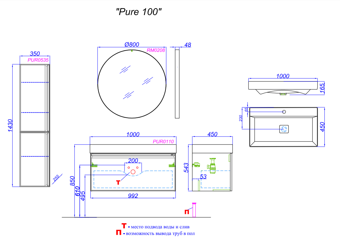 Благодаря минималистичному стилю и сдержанной цветовой гамме, мебель коллекции Pure легко впишется в любой современный интерьер. Для любого метража ванной комнаты можно подобрать подходящий по размеру продукт. В коллекции Pure на выбор есть три размера тумбы и пенал для дополнительного хранения. Окунитесь в атмосферу расслабления и комфорта с новой коллекцией Pure