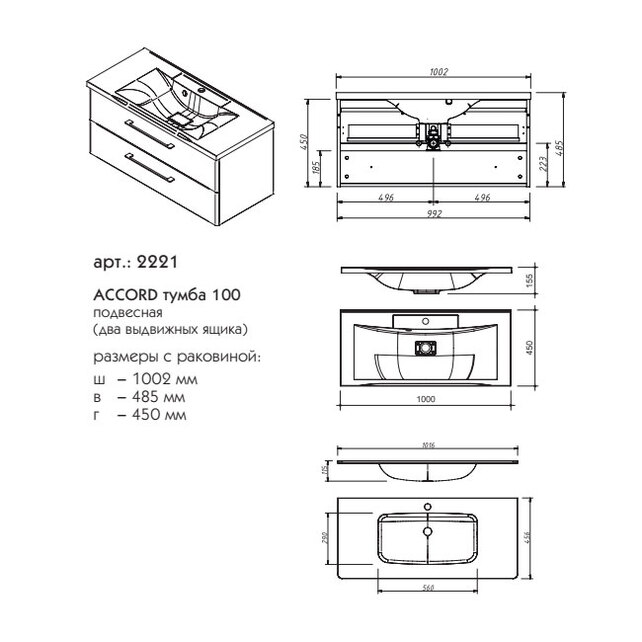 Тумба под раковину Caprigo Accord 100 см 2221 цвета разные